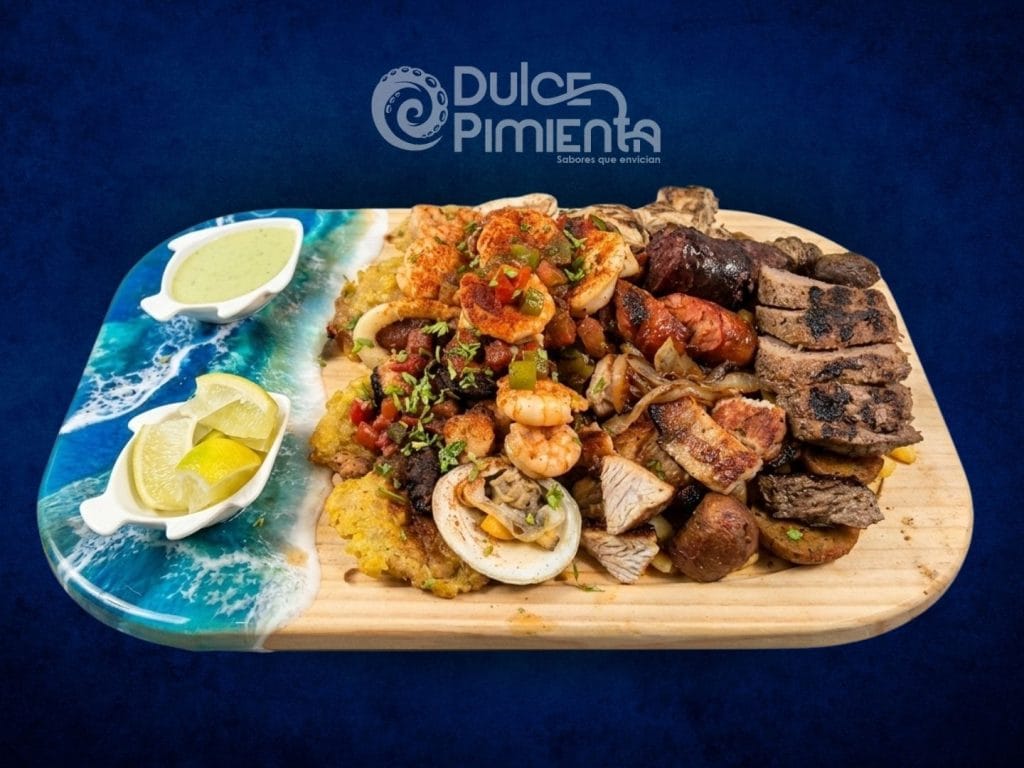 🌶️ ¡Con un toque picante! Un exquisito plato para compartir con una selección de mariscos frescos: camarones, calamares, pulpo, mejillones, ostiones y langostinos, cuidadosamente preparados para resaltar sus sabores naturales. Se acompaña de una papa horneada con mantequilla derretida, crema agria y crujientes trozos de tocino. Una experiencia intensa y sabrosa, ideal para los amantes …